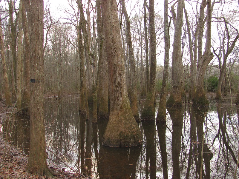 Looking down the Flint River (left). Looking off the trail towards the beaver dam (right):
