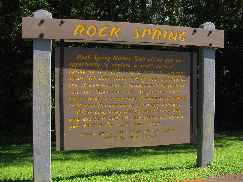 The Rock Spring trail is a short trail located just off the Natchez Trace Parkway, around mile marker 330. This short 20/30 minute hike will take you across Colbert Creek via a stone walkway and around by rock spring.